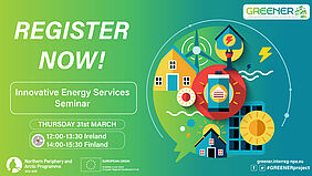 The GREENER partners are delighted to invite you to our Innovative Energy Service Seminar, which take place virtually on March 31st, 2022. The GREENER cluster project, have been working on gathering Innovative Energy Services to share and increased scalability of energy efficient resources in housing and public infrastructures across the NPA Programme area.